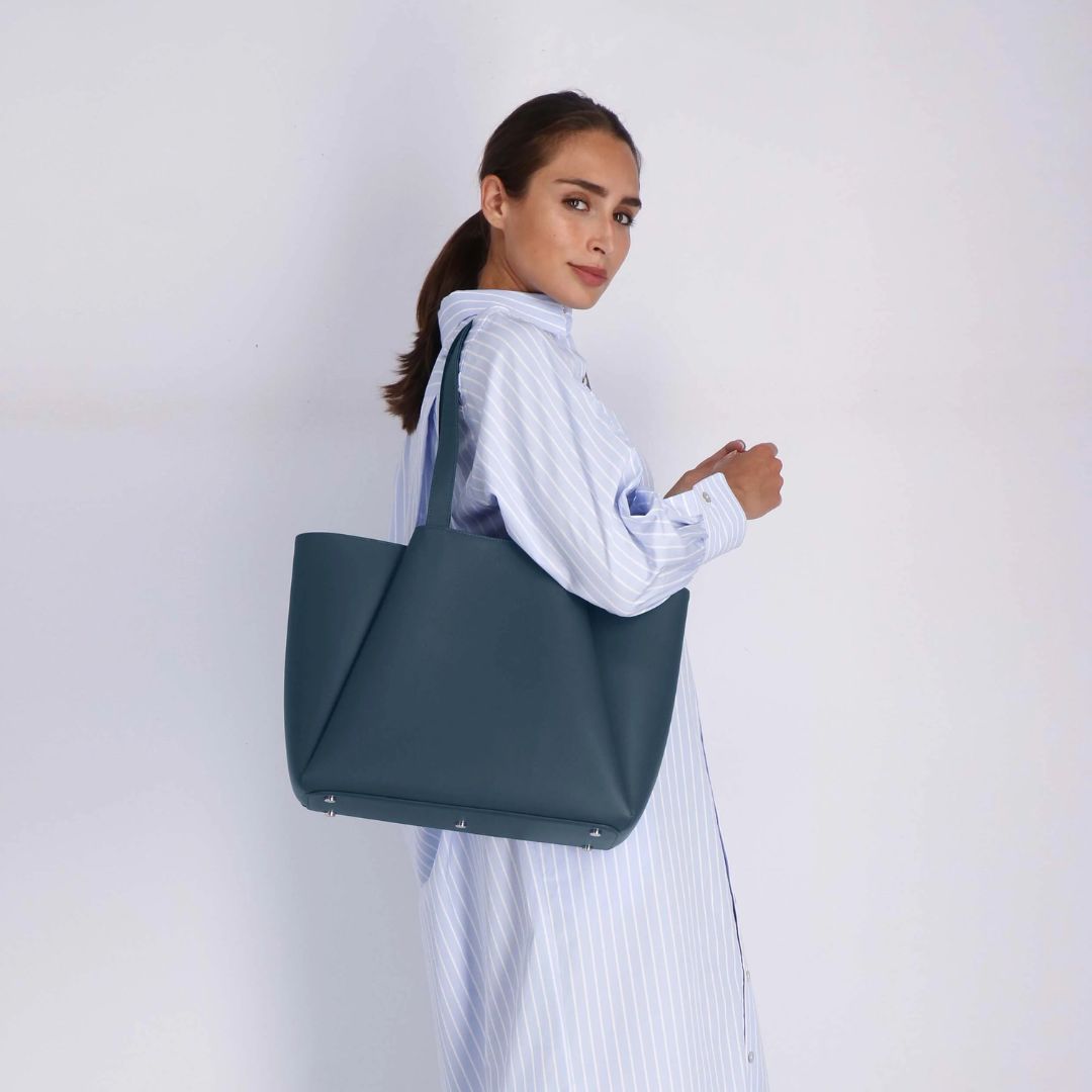 Introducing the Orla Handbag, a bold reimagination of everyday minimalism. With its clean architectural lines and sculptural folds, this deep blue carryall is made for the modern woman with a taste for structure and sophistication. Crafted from smooth vegan leather, the Orla Handbag stands out while seamlessly fitting into a neutral or elevated wardrobe.